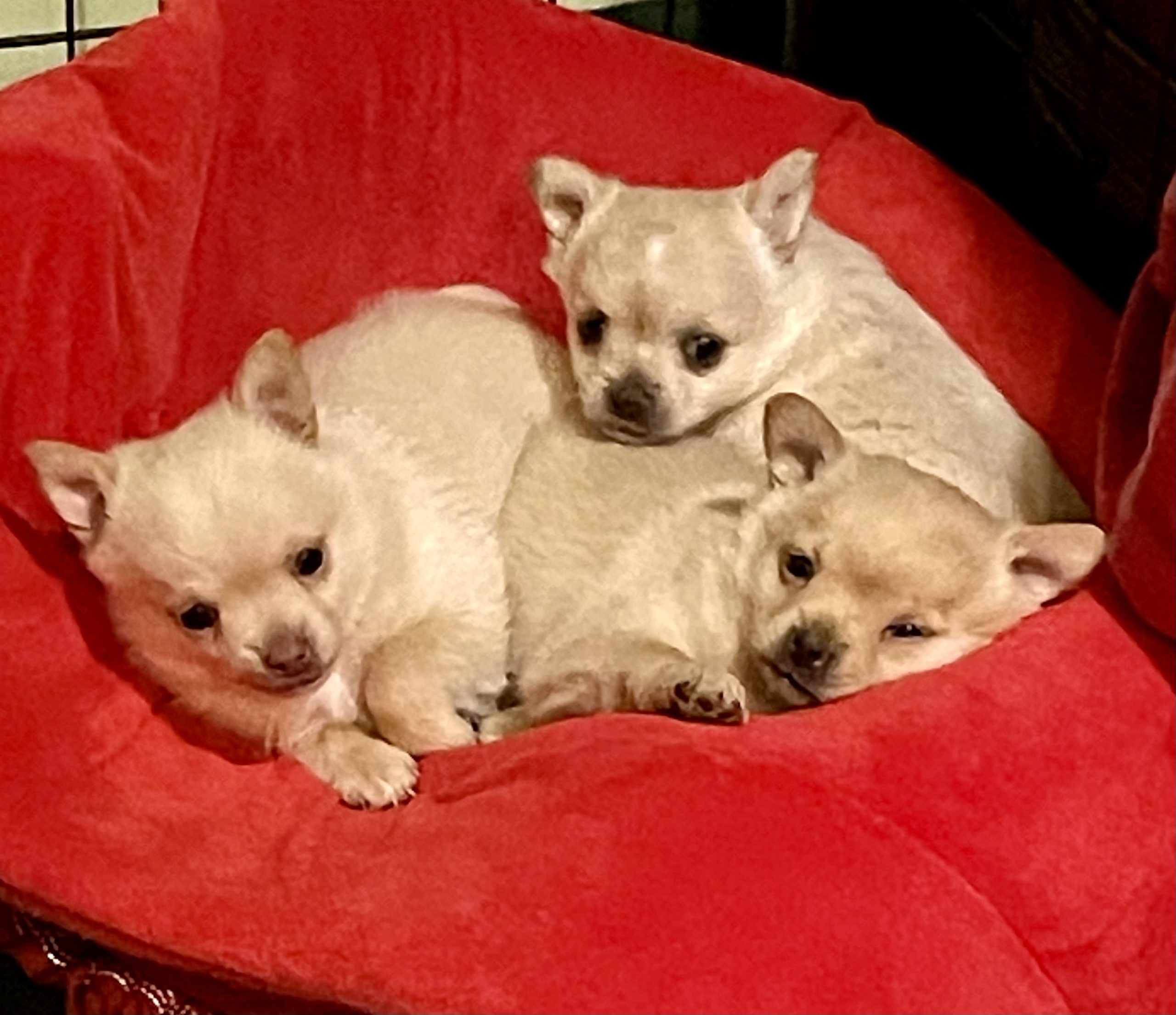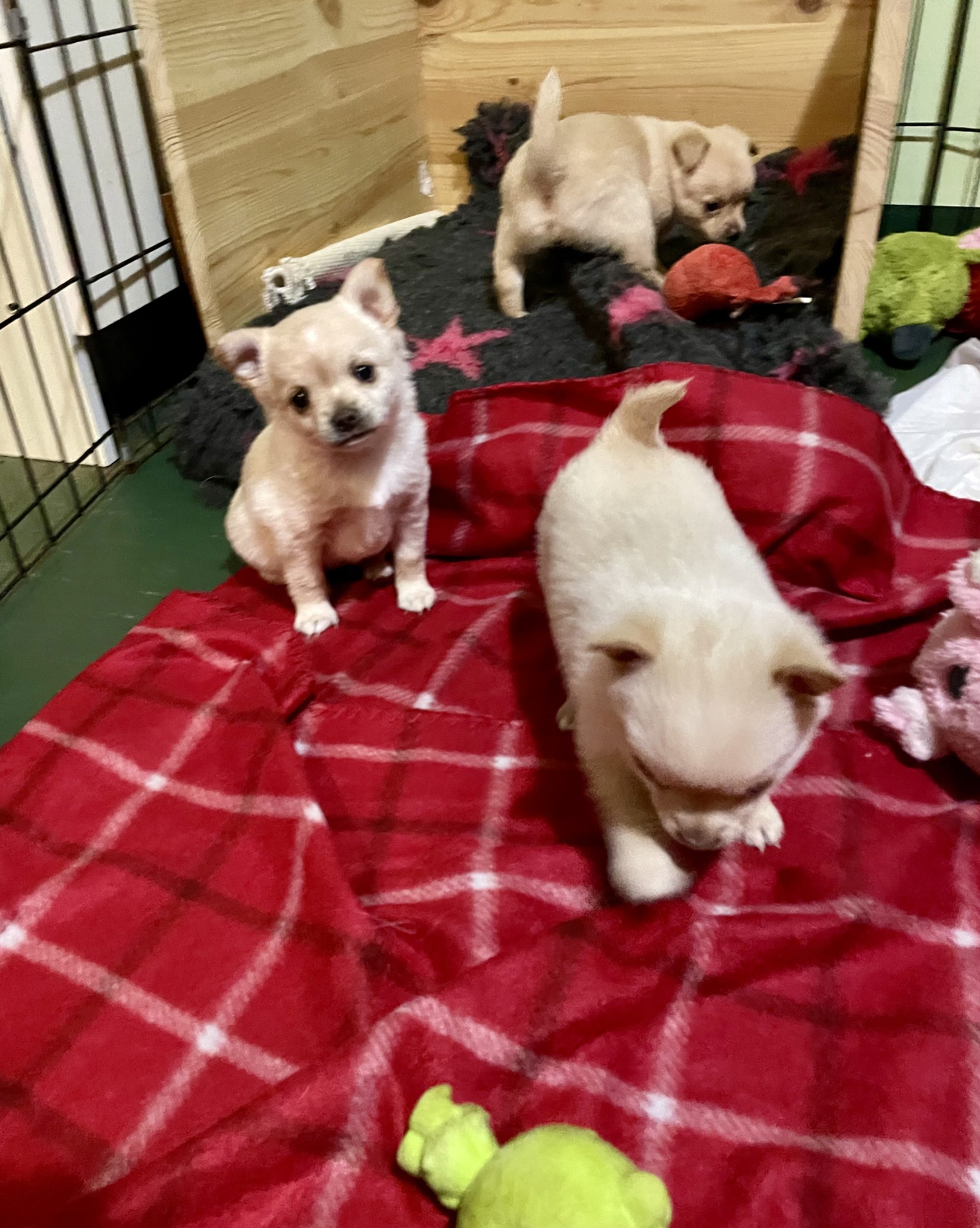 Reippaat kermanvalkoiset pörröturkkiset tyttöpennut etsivät omaa kotia. Luovutus 13.11.