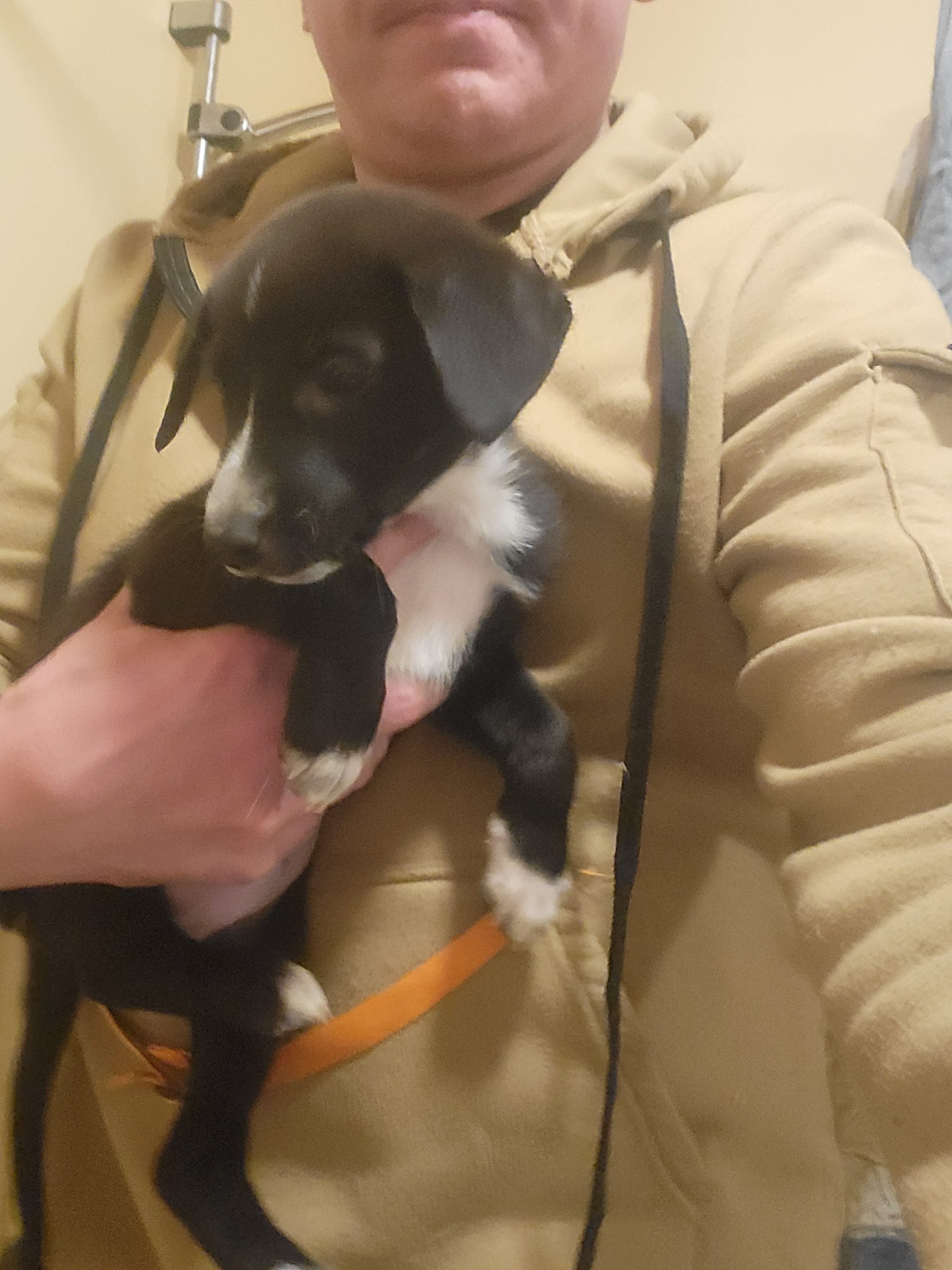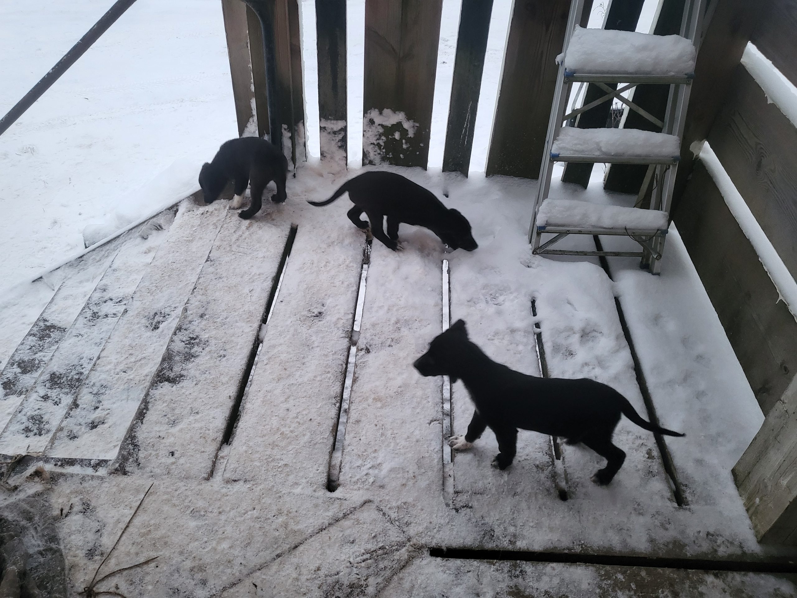 Vanhemmat omia koiria. Emä sekarotuinen (labradorinnoutaja/jämtlanninpystykorva). Isä venäjänajokoira.