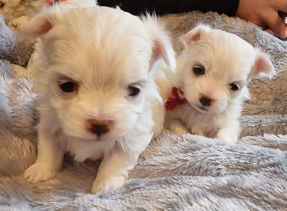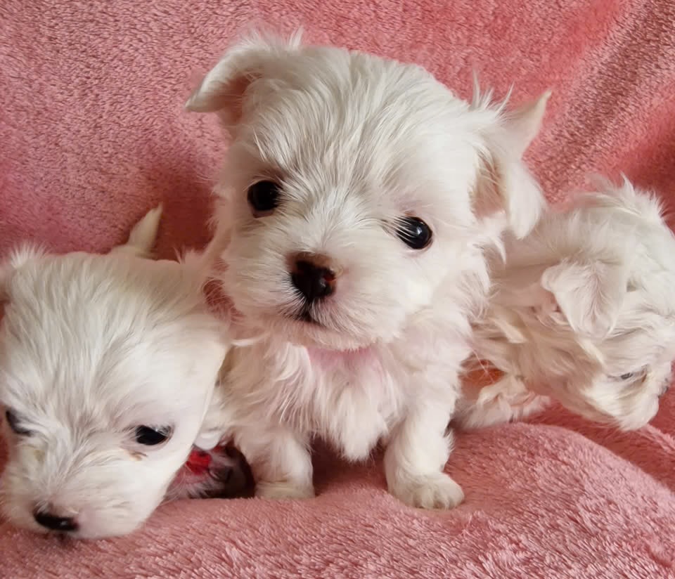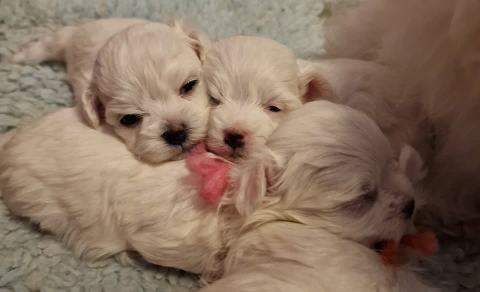 Molemmat vanhemmat ovat terveitä ja hyväkuntoisia. Äiti painaa noin 3,2 kg ja isä noin 3 kg. Joten nämä ovat todennäköisesti hyvin pieniä maltankoiria.
