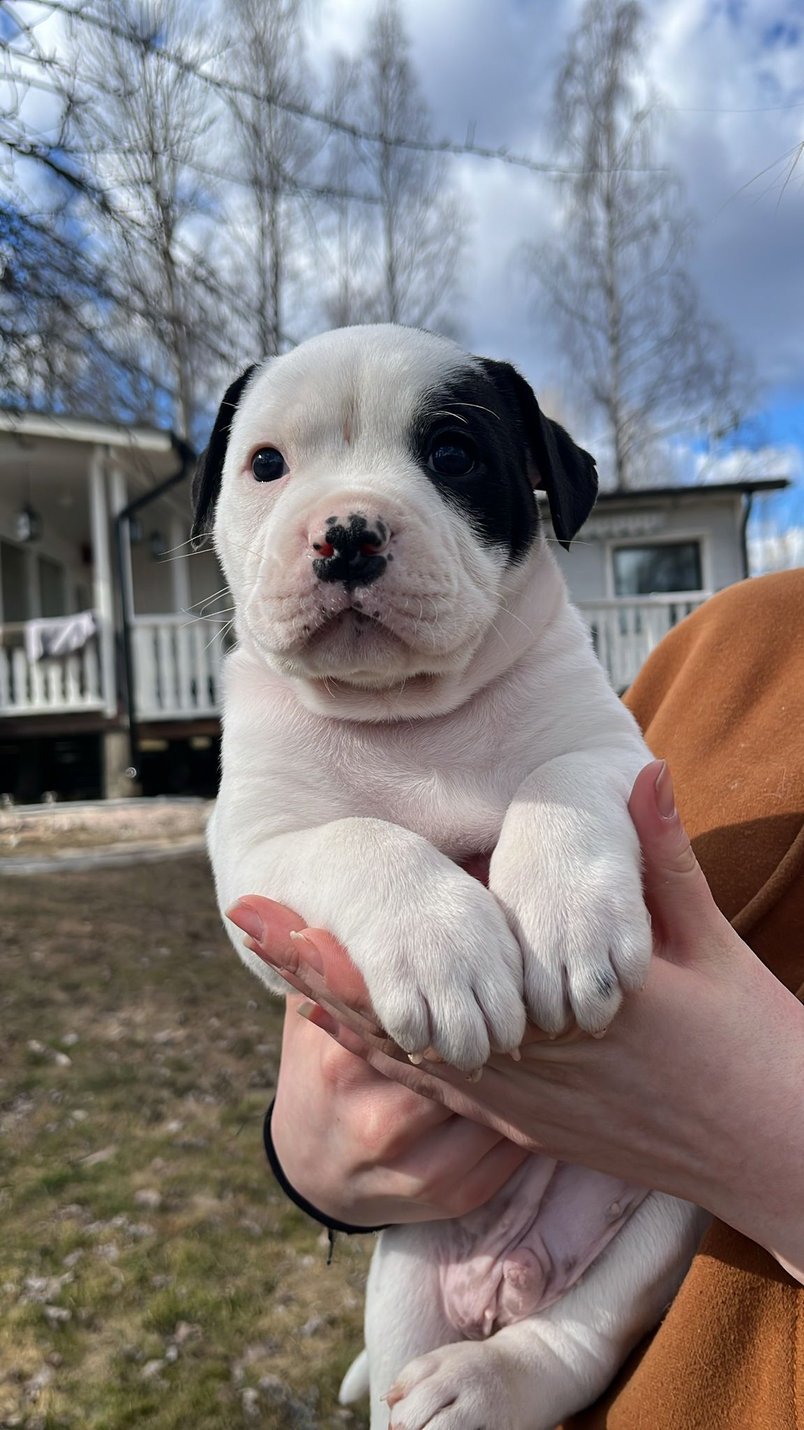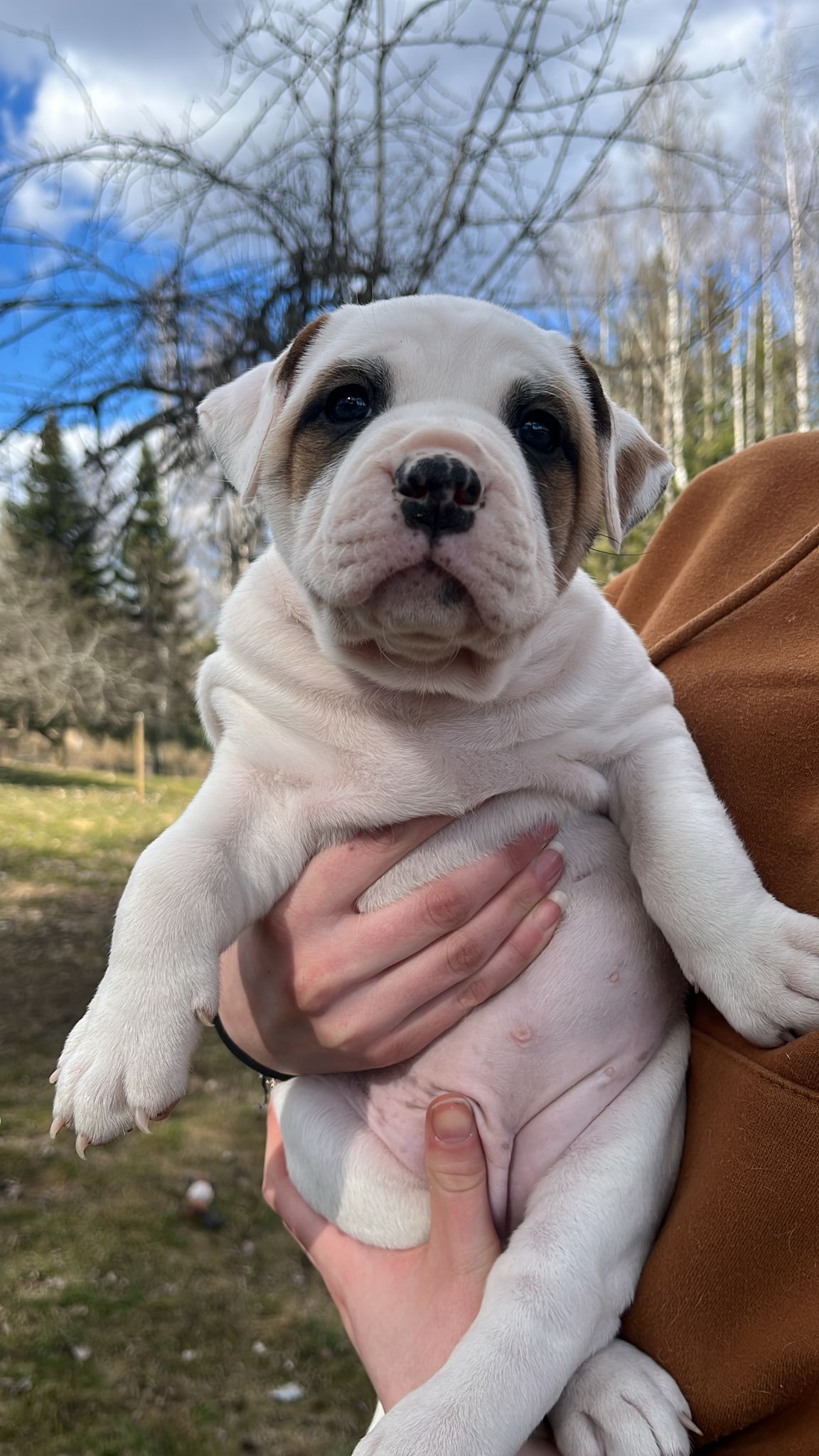 Myydään 13.3.26 syntyneitä Snowwhite Americanbulldog pentuja.