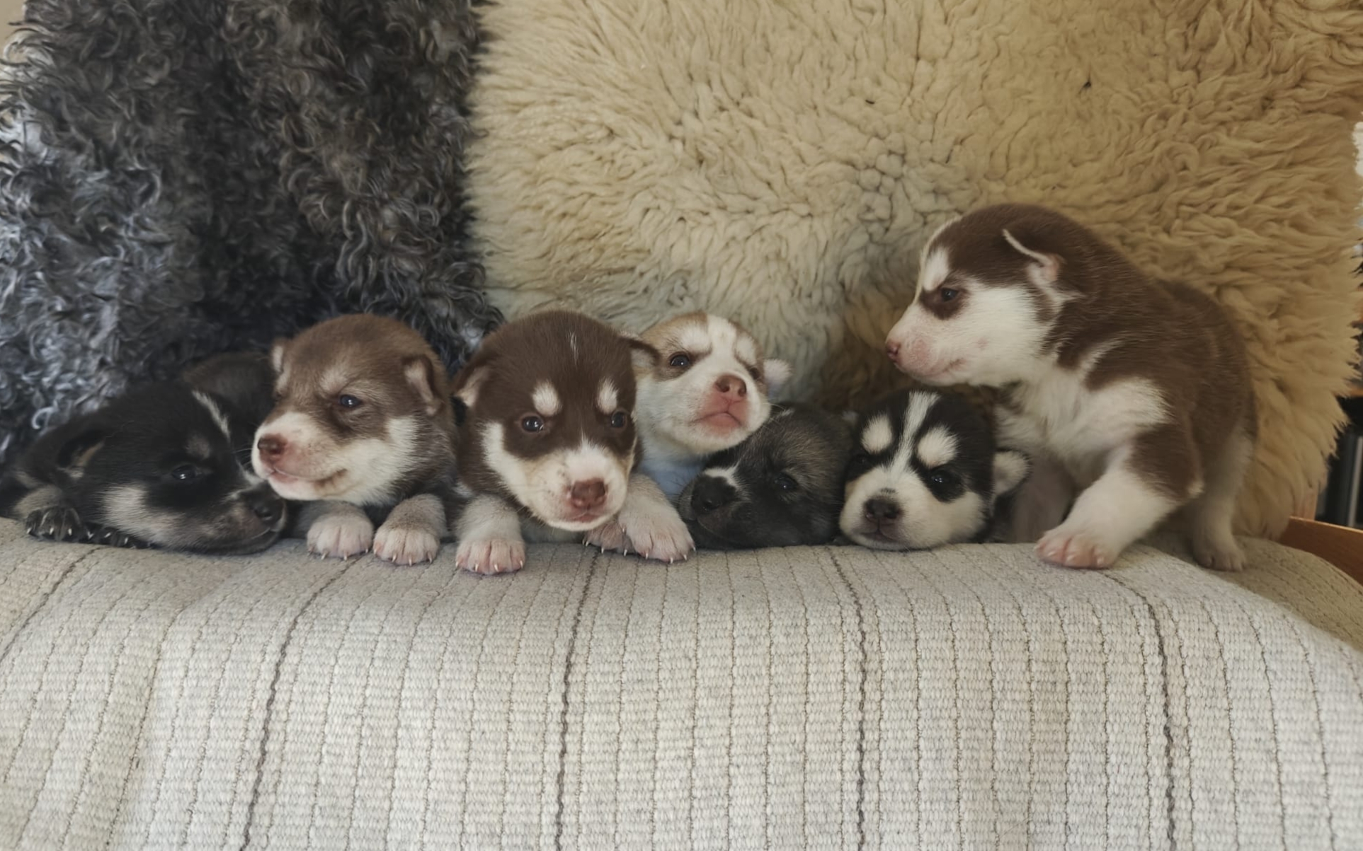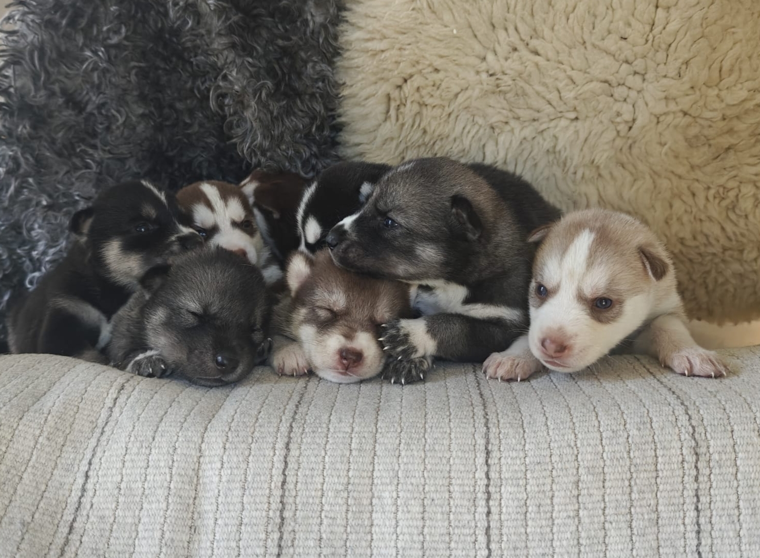 Meillä on pentue siperianhusky-pentuja, syntyneet 9.–10. syyskuuta 2025.