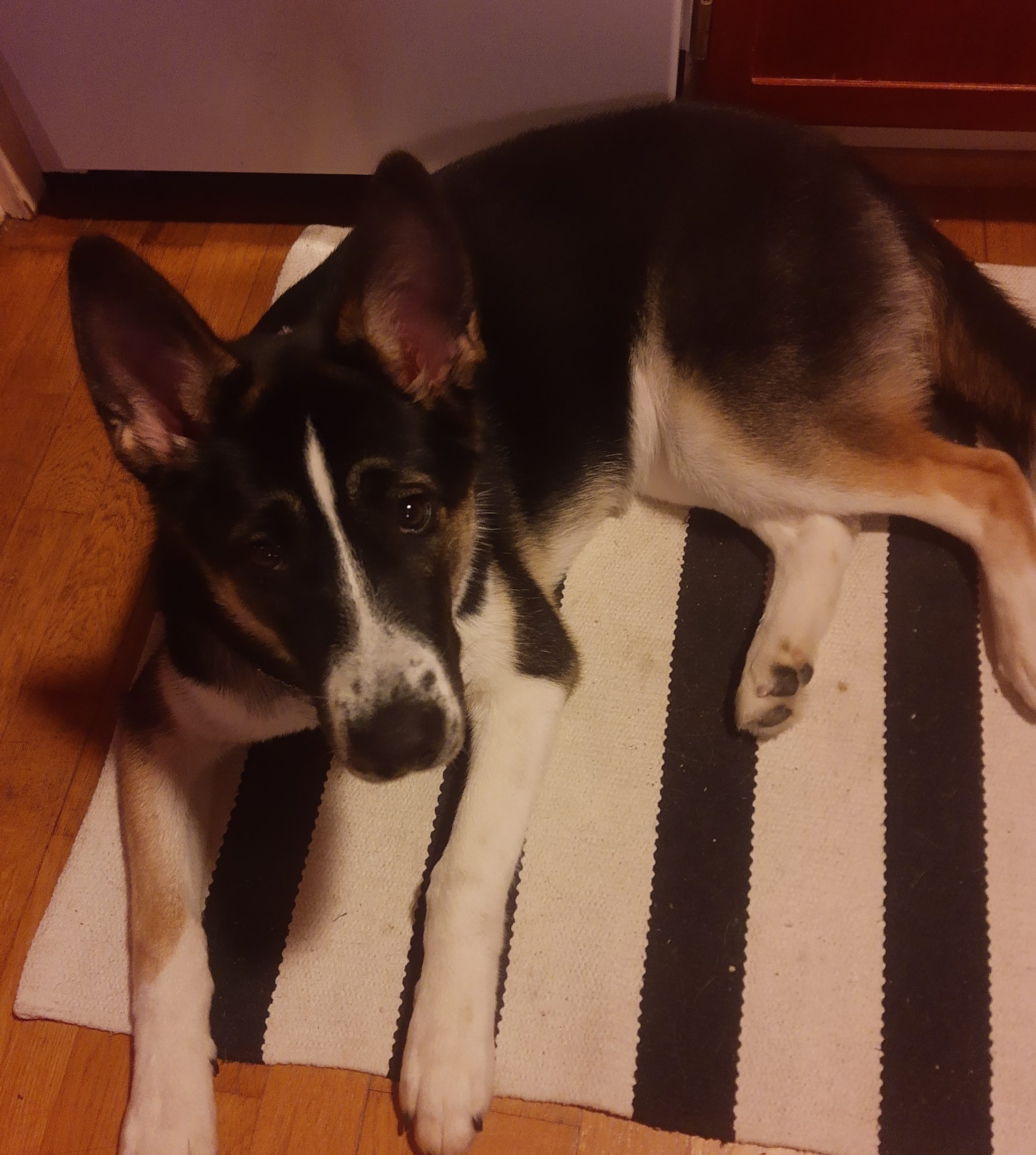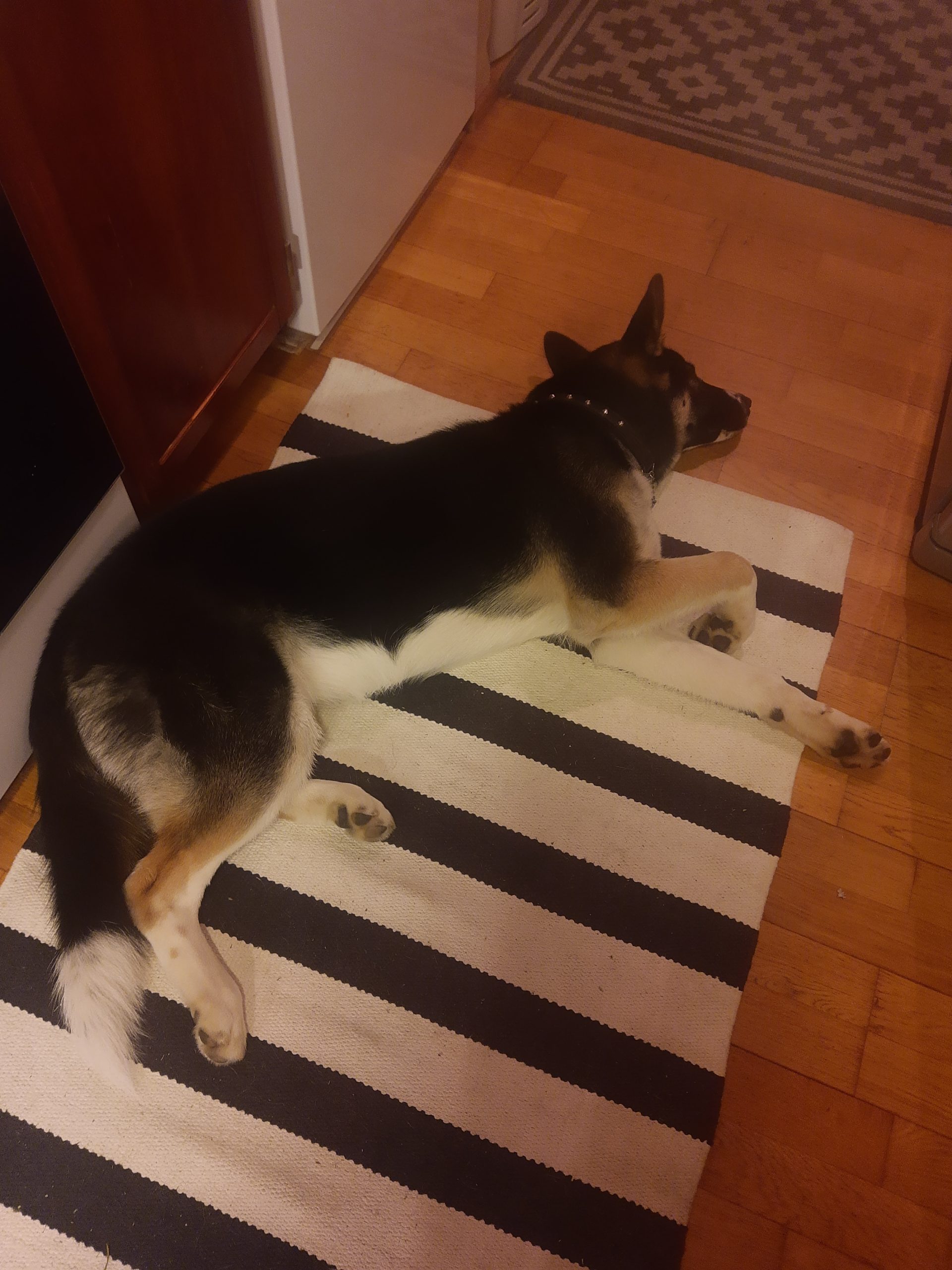 Saksanpaimenkoira/ Siperianhusky leikkaamaton 7 kk ikäinen narttu etsii uutta kotia.