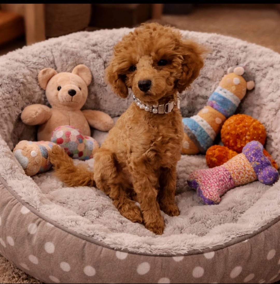 suloinen ja reipas kääpiövillakoira urospentu, syntynyt 16.11.2025.